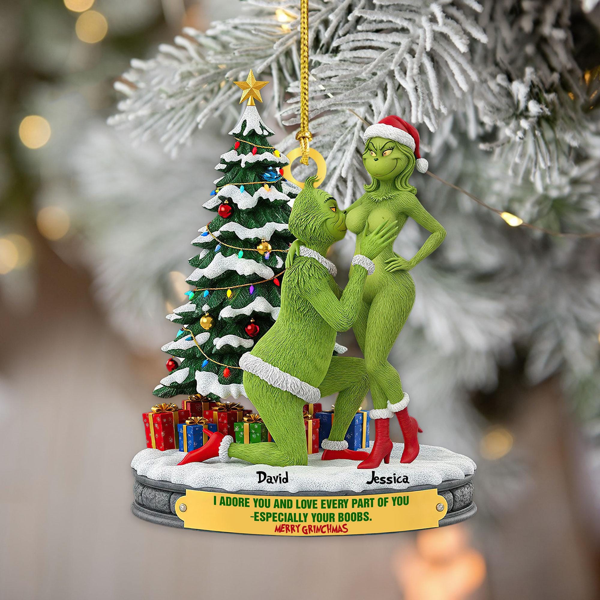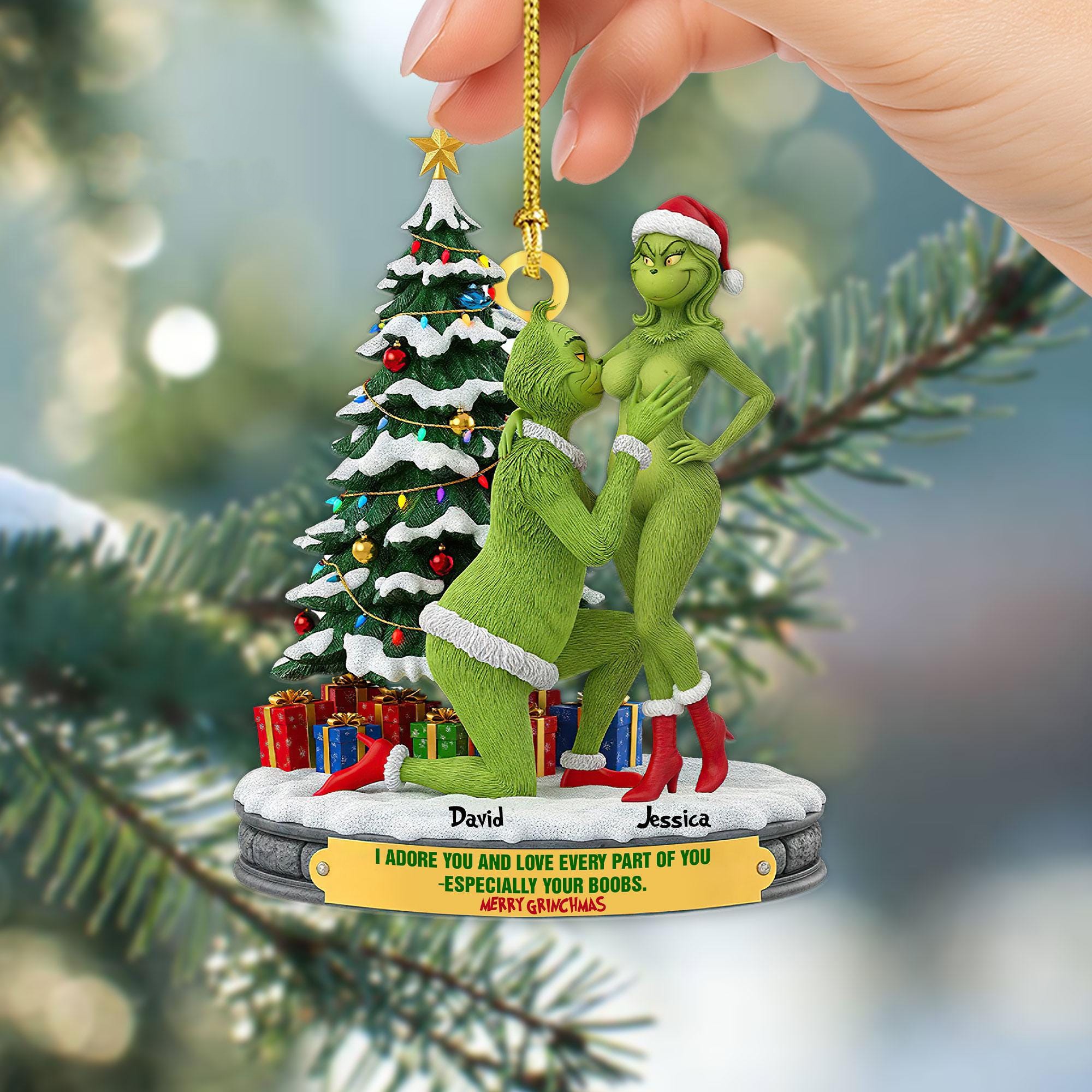 Acrylic Ornament – Couple Christmas Ornament – Grinch Holiday Ornaments – Funny Holiday Ornaments – Grinchmas Gift – Personalized Ornament – MGM13