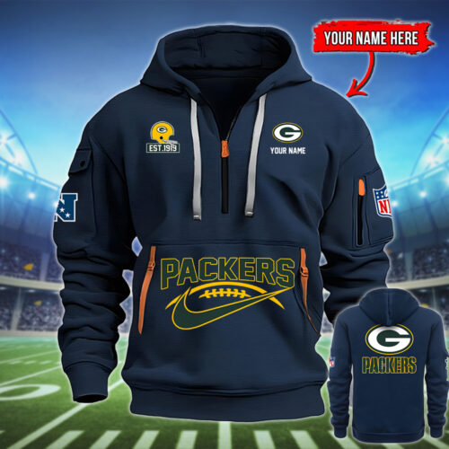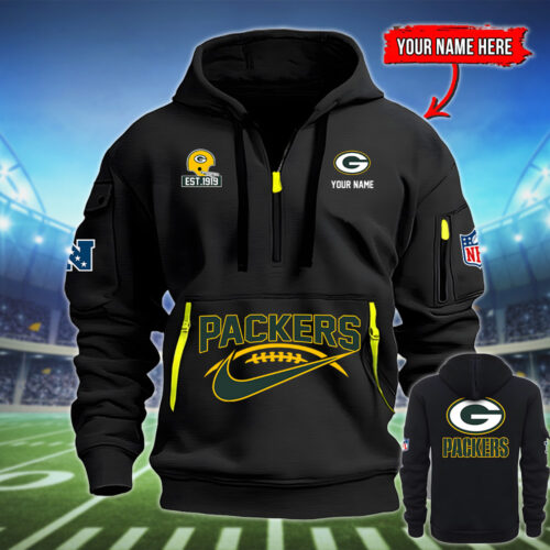 Don’t just cheer for the Packers—wear their legacy. Select your preferred color, find your perfect size, and order your Green Bay Packers EST 1919 Quarter-Zip Hoodie today!