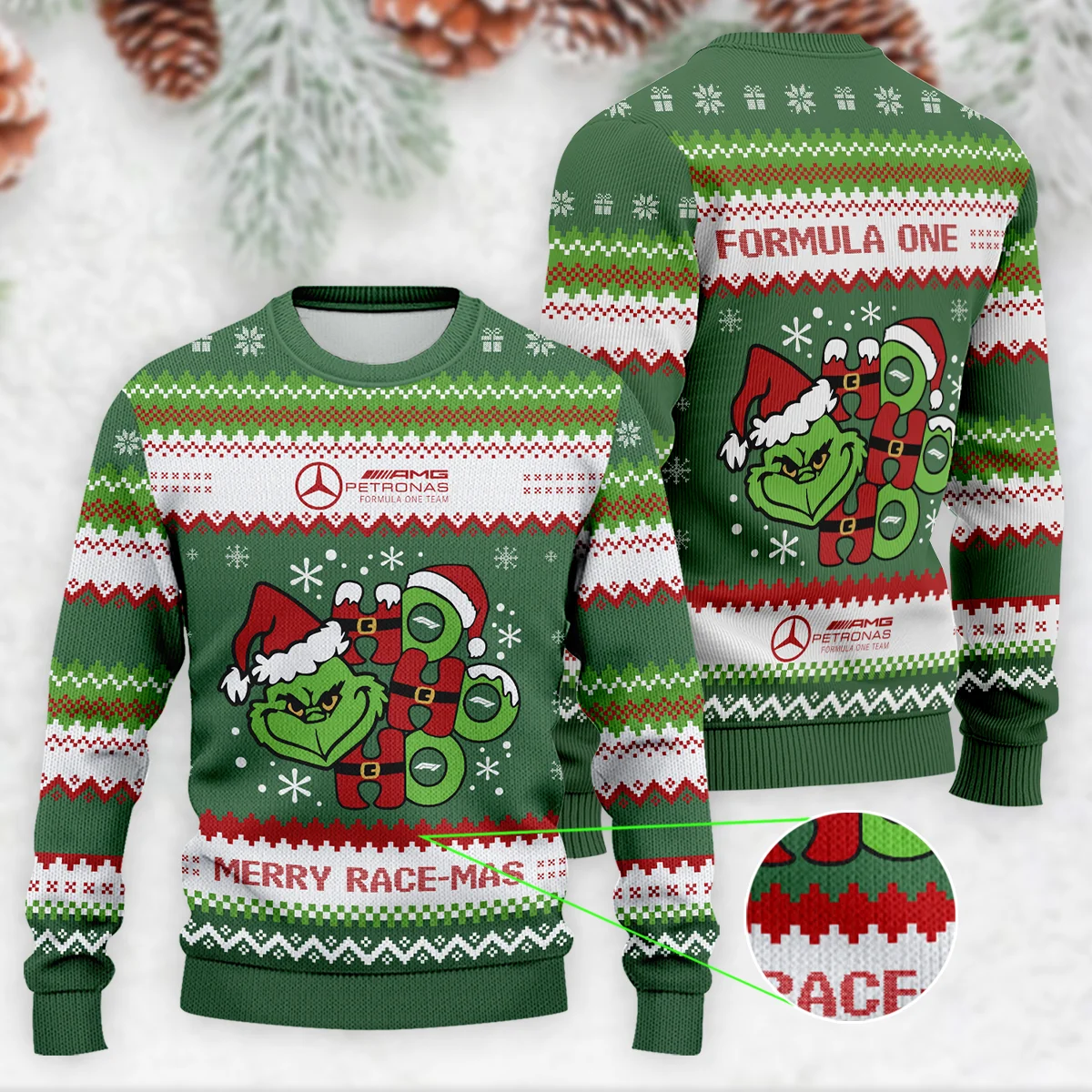 Hohoho The Grinch Mercedes Formula 1 Ugly Sweater – MUS12