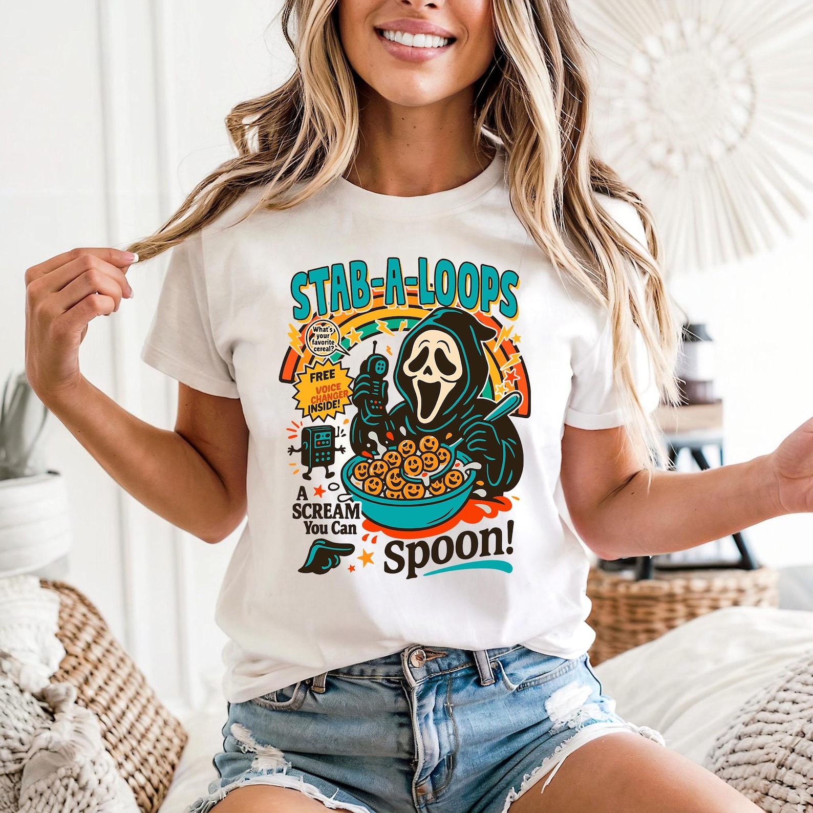 • This item: Stab-a-loops Ghost Mask Halloween Shirt - HLW110 Original price was: $51.98.Current price is: $25.99.